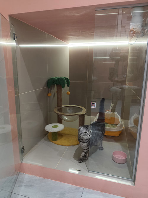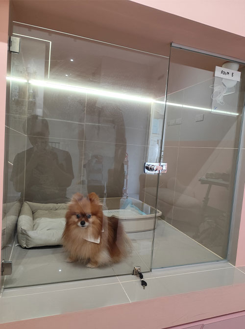 Our Pet Hotel feature spacious, air-conditioned rooms with 24/7 CCTV, designed to keep dogs and cats comfortable, safe, and stress-free. From small suites to VIP rooms, every pet enjoys premium care.